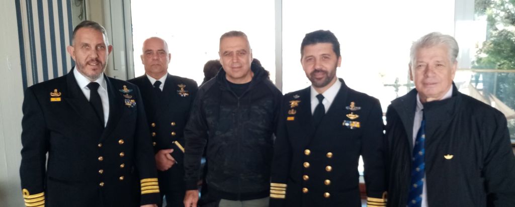 φωτ.Από αριστερά τω βλέποντι, ο π. Διοικητής ΔΥΚ Πλοίαρχος Κωνσταντίνος Νασσόπουλος, 2ος από δεξιά τω βλέποντι ο Διοικητής της Σχολής Υποβρυχίων Καταστροφών Αντιπλοίαρχος Ιωάννης Νεράκης και στα αριστερά του ο Νικόλαος Μούρτης