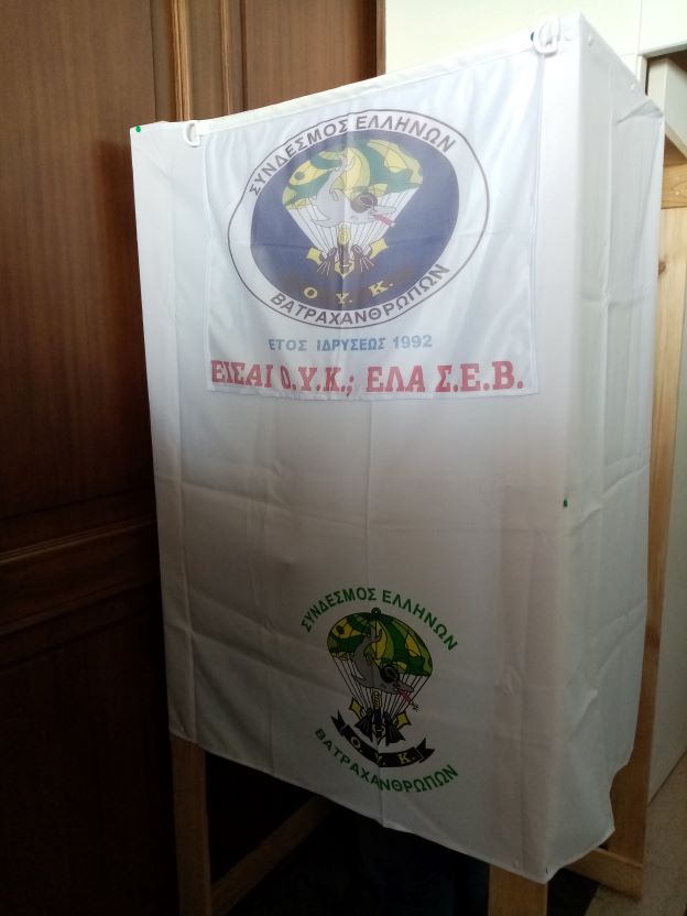 φωτ.αριστερά, το εκλογικό παραβάν, δεξιά τα αναμνηστικά του Συνδέσμου