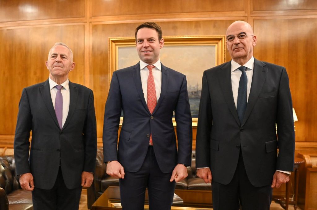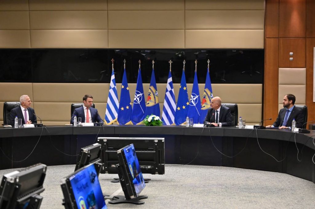 Ο Υπουργός Εθνικής Άμυνας Νίκος Δένδιας ενημέρωσε τον Πρόεδρο του ΣΥΡΙΖΑ-ΠΣ Στέφανο Κασσελάκη για θέματα της Εθνικής Άμυνας κατά τη σημερινή του επίσκεψη στο ΥΠΕΘΑ, στην οποία συνοδευόταν από τον Τομεάρχη Εθνικής Άμυνας Ευάγγελο Αποστολάκη και τον Διευθυντή του Πολιτικού Γραφείου του Μανώλη Καπνισάκη.