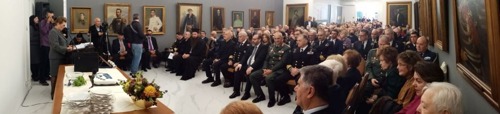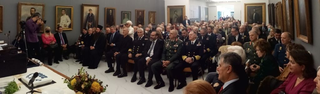 Εμείς, από την περίοπτη και τιμητική θέση που είχαμε σταθεί χάριν του ρεπορτάζ, για να μας δίνει και χέρι για την φωτογράφηση, χαρήκαμε ιδιαιτέρως που κατά τύχη βρεθήκαμε δίπλα… στον Ναύαρχο Παύλο Κουντουριώτη, Αρχηγό Στόλου των Βαλκανικών Πολέμων (-εικονιζόμενο σε εκτεθειμένη προσωπογραφία). Ο μεγάλος Ναυταίος που έγραψε ιστορία με το θρυλικό θωρηκτό “Αβέρωφ” παρατηρούσε… τα τεκταινόμενα στην αίθουσα εκδηλώσεων με το αγέρωχο ύφος των παλαιών Αξιωματικών του ένδοξου ελληνικού πολεμικού ναυτικού.