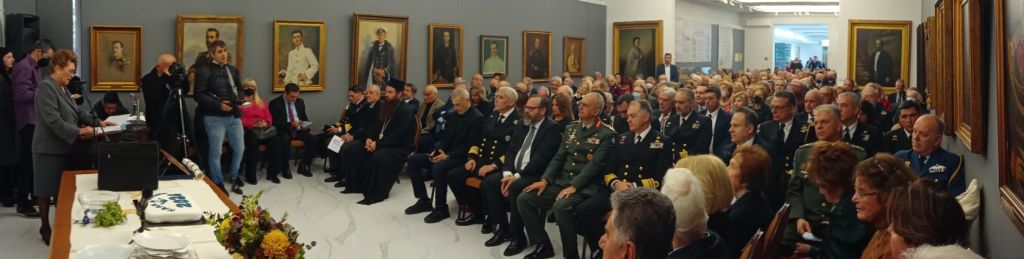 φωτ. από την αίθουσα εκδηλώσεων του Ναυτικού Μουσείου Ελλάδος, αριστερά στο βήμα των ομιλητών η Πρόεδρος κα Αναστασία Αναγνωστοπούλου – Παλούμπη