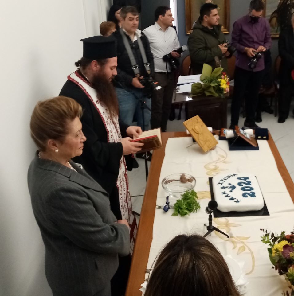 Εν συνεχεία ευλογήθηκε η βασιλόπιτα και μετά ακολούθησε μικρή δεξίωση με νόστιμα εδέσματα στους χώρους του μουσείου.