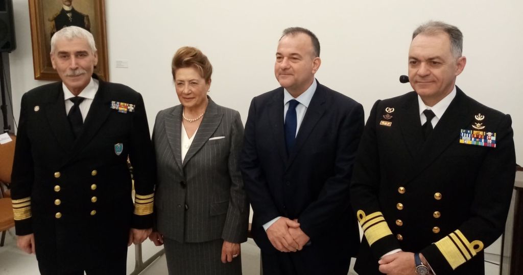 φωτ. από αριστερά, ο Αρχηγός του ΛΣ-ΕΛΑΚΤ Αντιναύαρχος ΛΣ Γεώργιος Αλεξανδράκης, δίπλα του κα Αναστασία Αναγνωστοπούλου – Παλούμπη και από δεξιά τω βλέποντι ο Α/ΓΕΝ Αντιναύαρχος Δημήτριος Ελευθέριος Κατάρας