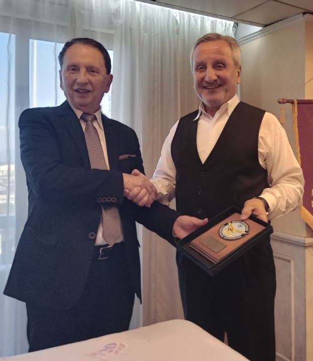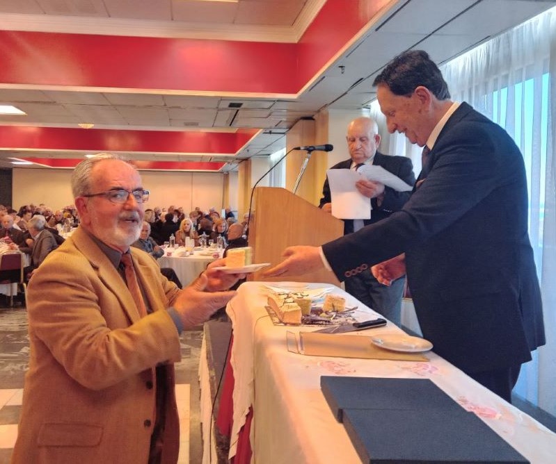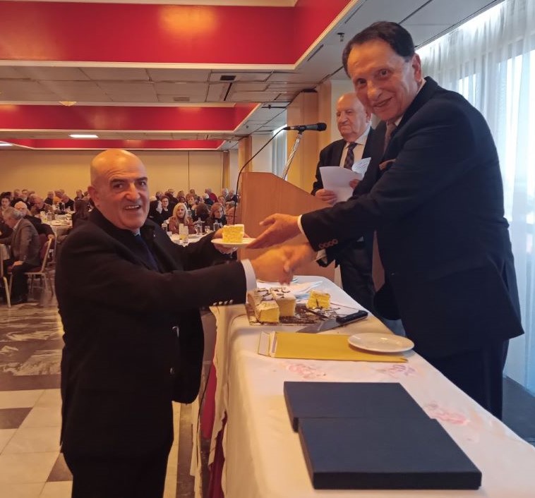 φωτ. από δεξιά, ο κ. Βασίλειος Χρόνης δίνει την Βασιλόπιτα στον κ. Κωνσταντίνο Νάκα
