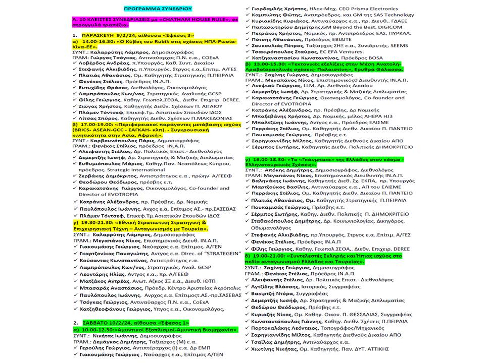 Η τιμητική και ευρεία συμμετοχή καταξιωμένων Καθηγητών /Ακαδημαϊκών, Υπουργών/Υφυπουργών/Πολιτικών, Επιστημόνων, Πρέσβεων ε.τ. και Ανώτατων Αξιωματικών ε.α. Ε.Δ., Επιχειρηματιών, Δημοσιογράφων και Συγγραφέων διασφαλίζει την επιτυχία του Συνεδρίου.