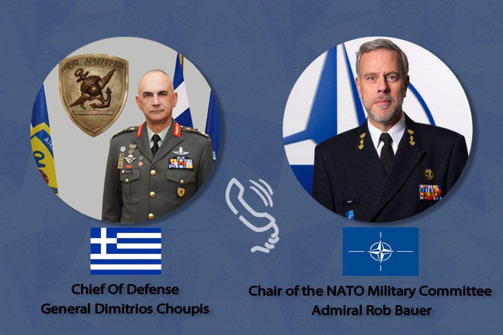 Σήμερα Τετάρτη 7 Φεβρουαρίου 2024, ο Αρχηγός ΓΕΕΘΑ Στρατηγός Δημήτριος Χούπης είχε τηλεφωνική επικοινωνία με τον Πρόεδρο της Στρατιωτικής Επιτροπής του ΝΑΤΟ (Chair Military Committee – CMC) Admiral Rob Bauer (Royal Netherlands Navy).