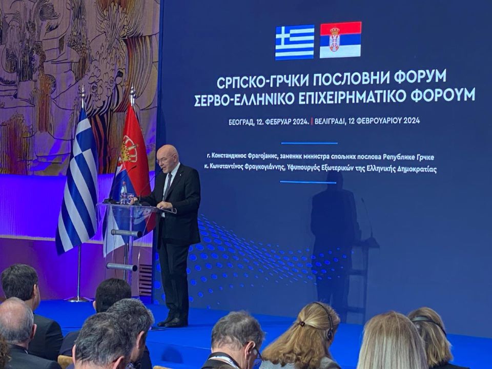 Με επιτυχία ολοκληρώθηκε η αυθημερόν επιχειρηματική αποστολή στο Βελιγράδι, τη Δευτέρα 12 Φεβρουαρίου, υπό το συντονισμό του Υφυπουργού Εξωτερικών για την Οικονομική Διπλωματία και Εξωστρέφεια, Κώστα Φραγκογιάννη και με συμμετοχή 360 Ελλήνων και Σέρβων επιχειρηματιών, με βάση στοιχεία του Σερβικού Εμπορικού και Βιομηχανικού Επιμελητηρίου που φιλοξένησε την εκδήλωση.