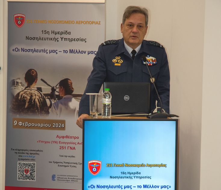 Την Παρασκευή 9 Φεβρουαρίου 2024, πραγματοποιήθηκε στο Αμφιθέατρο «Υποπτεράρχου (ΥΝ) Ευαγγελίας Ανδρεαδάκη» του 251 Γενικού Νοσοκομείου Αεροπορίας (251ΓΝΑ), η 15η Νοσηλευτική Ημερίδα με θέμα «Οι Νοσηλευτές μας – το Μέλλον μας», υπό την Αιγίδα του Τμήματος Νοσηλευτικής της Σχολής Επιστημών Υγείας του Εθνικού Καποδιστριακού Πανεπιστημίου Αθηνών (ΕΚΠΑ).