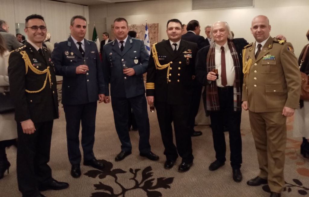 φωτ.από αριστερά, ο Ακόλουθος Άμυνας της Τουρκίας Συνταγματάρχης κ. Ali Aktemur και άλλοι στρατιωτικοί, από δεξιά ο Ακόλουθος Άμυνας της Ρουμανίας Συνταγματάρχης κ. Vasile Stănescu και δίπλα του ο Διεθνολόγος – Γεωστρατηγικός Αναλυτής κ. Αθανάσιος Δρούγος