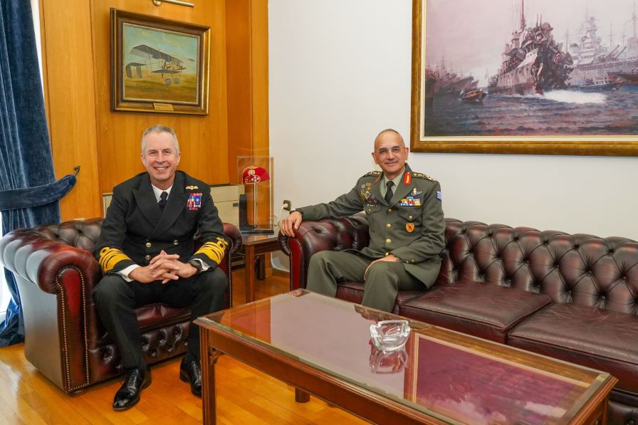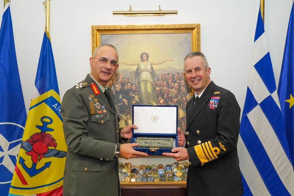 Ο Αρχηγός ΓΕΕΘΑ Στρατηγός Δημήτριος Χούπης συναντήθηκε σήμερα Πέμπτη 22 Φεβρουαρίου 2024 στο γραφείο του με τον Deputy Supreme Allied Commander Europe (DSACEUR) Admiral Sir Keith Blount, στο πλαίσιο επίσημης επίσκεψής του στην Ελλάδα.