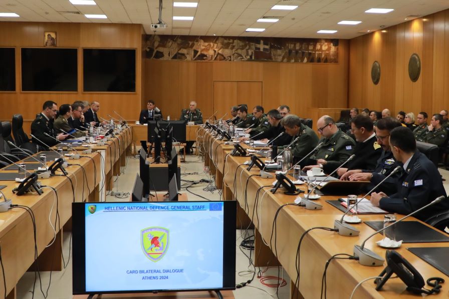 Την Τετάρτη 21 Φεβρουαρίου 2024 πραγματοποιήθηκαν στο ΓΕΕΘΑ διμερείς συνομιλίες επί αντικειμένων αμυντικού σχεδιασμού, μεταξύ αντιπροσωπείας αρμόδιων επιτελών του ΓΕΕΘΑ και των Γενικών Επιτελείων, και αντίστοιχων αξιωματούχων του Ευρωπαϊκού Οργανισμού Άμυνας (European Defence Agency – EDA).