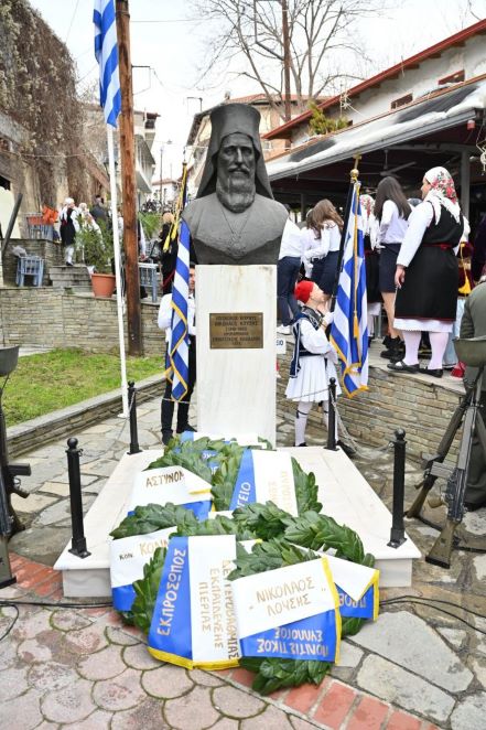 Ακολούθως πραγματοποιήθηκε επιμνημόσυνη δέηση και κατάθεση στεφάνων στον χώρο της προτομής του Επισκόπου Κίτρους Νικολάου Λούση, όπως και παρέλαση μαθητών.