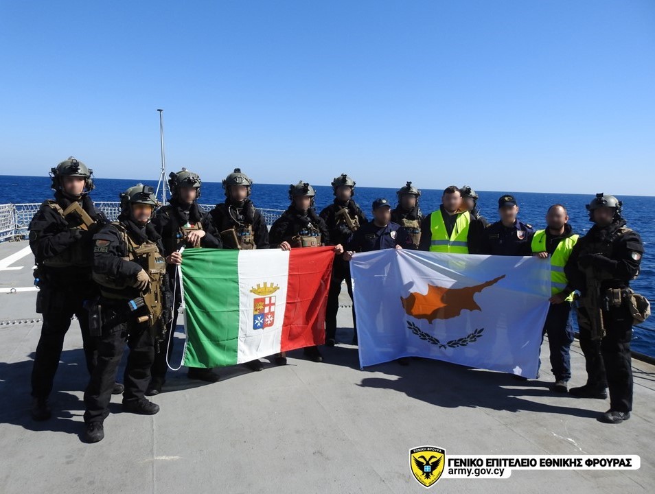 Την Πέμπτη 29 Φεβρουαρίου 2024, στο πλαίσιο του Προγράμματος Διμερούς Αμυντικής Συνεργασίας (ΠΔΑΣ) μεταξύ των Ενόπλων Δυνάμεων (ΕΔ) της Κυπριακής Δημοκρατίας και της Ιταλίας, πραγματοποιήθηκε διεθνής άσκηση ναυτικής συνεργασίας μικρής κλίμακας, με την επωνυμία «CYP/ITA-02/2024».