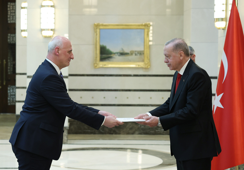 Ο Πρέσβης της Ελλάδος στην Τουρκία Θεόδωρος Μπιζάκης επέδωσε τα διαπιστευτήριά του στον Τούρκο Πρόεδρο Ρετζέπ Ταγίπ Ερντογάν στο Προεδρικό Μέγαρο, σύμφωνα με ανακοίνωση στην ιστοσελίδα της Προεδρίας της Τουρκικής Δημοκρατίας (πατήστε εδώ).