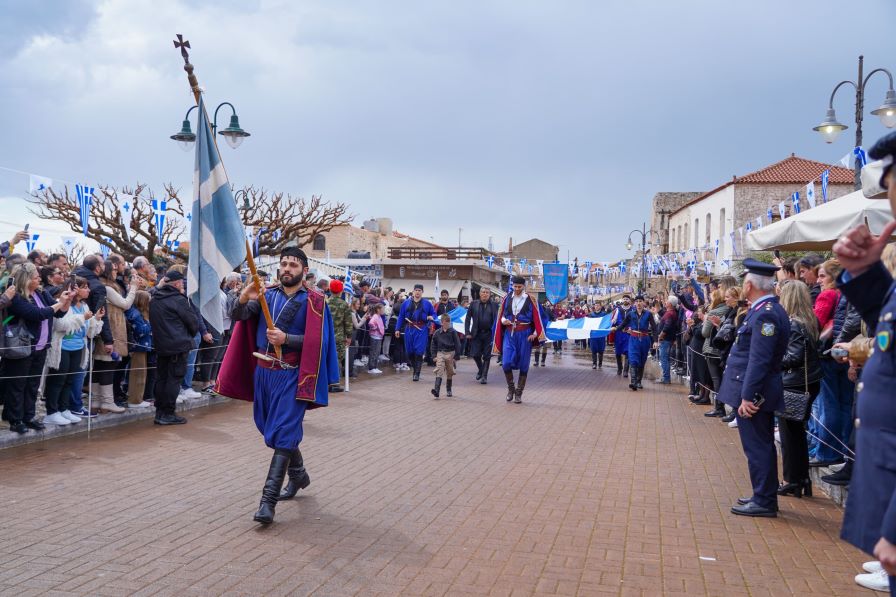 Οι εκδηλώσεις περιλάμβαναν έπαρση Σημαίας, Δοξολογία στον Ιερό Ναό Παμμεγίστων Ταξιαρχών χοροστατούντων των Σεβασμιωτάτων Μητροπολιτών Μάνης κ.κ. Χρυσοστόμου Γ΄ και Μεσσηνίας κ.κ. Χρυσοστόμου, αναπαράσταση έναρξης της επαναστάσεως, εκφώνηση πανηγυρικού λόγου, επιμνημόσυνη δέηση, κατάθεση στεφάνων και παρέλαση τμημάτων.