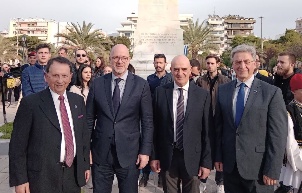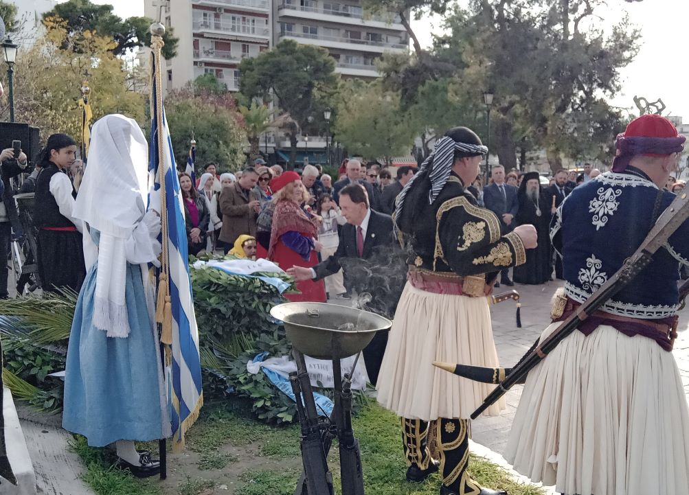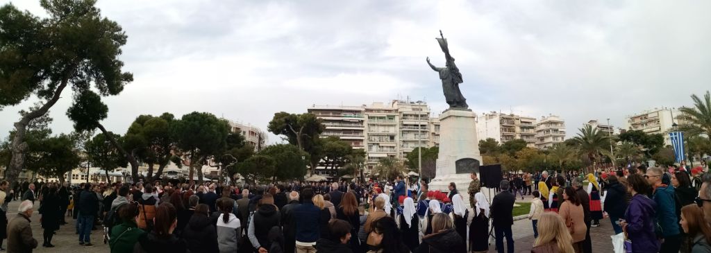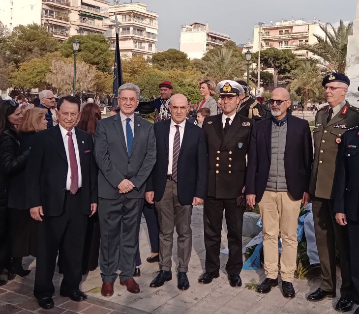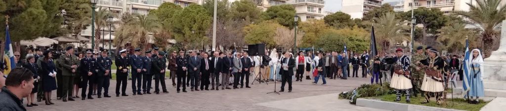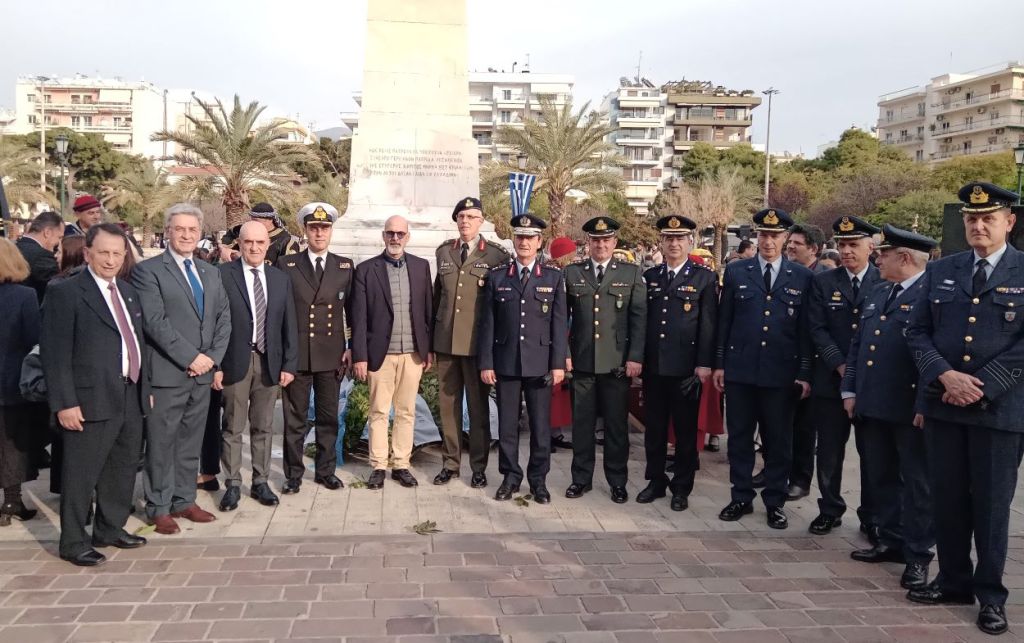 Στην εκδήλωση της μεγάλης πλατείας της πόλεως των Πατρών παρέστησαν Εκπρόσωποι της πολιτικής και στρατιωτικής ηγεσίας, της τοπικής αυτοδιοίκησης, Εκπρόσωποι φορέων και συλλογικοτήτων, μεταξύ άλλων, οι Πρόεδροι των παραρτημάτων Πατρών των Ενώσεων Αποστράτων Αξιωματικών, της Αεροπορίας ο κ. Βασίλειος Χρόνης, του Ναυτικού ο κ. Δημήτριος Μποϊλές και του Στρατού ο κ. Κωνσταντίνος Νάκας.