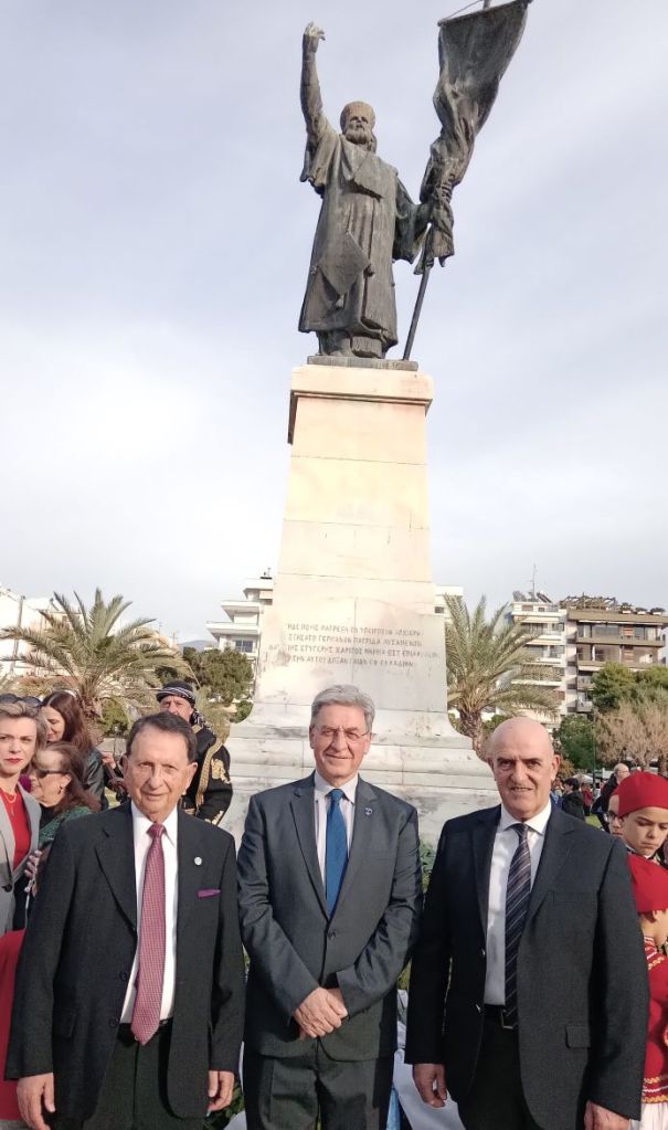 Κατάθεση στεφάνου από τους Προέδρους των Ενώσεων Αποστράτων Αξιωματικών Αεροπορίας, Ναυτικού και Στρατού στον ανδριάντα του Παλαιών Πατρών Γερμανού