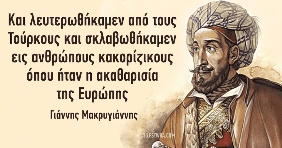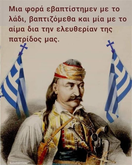 Από το Λεωνίδα και τις Θερμοπύλες, από τον βασιλιά μας τον Κωνσταντίνο Παλαιολόγο και την Πόλη, στην αιώνια σεπτή μορφή του Γέρου του Μωριά, του Καπτάν Θοδωράκη και στον λόγο του στους νέους στην Πνύκα !!..