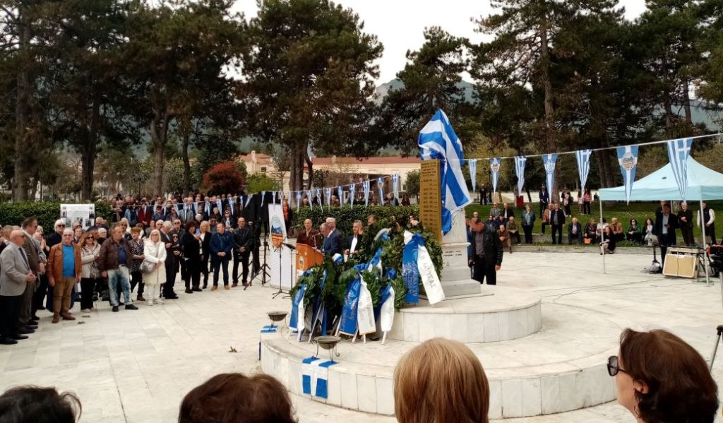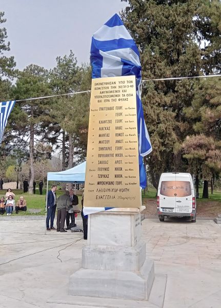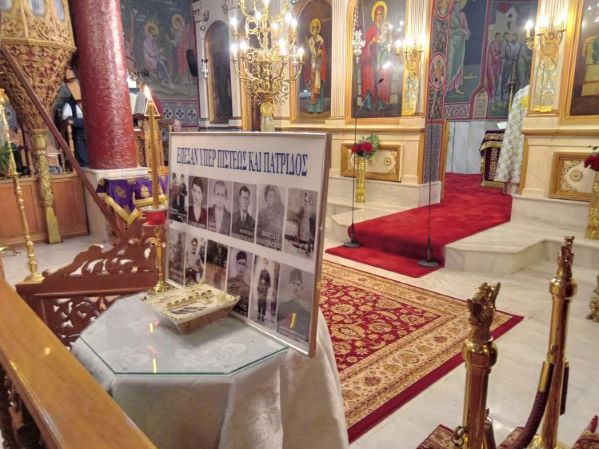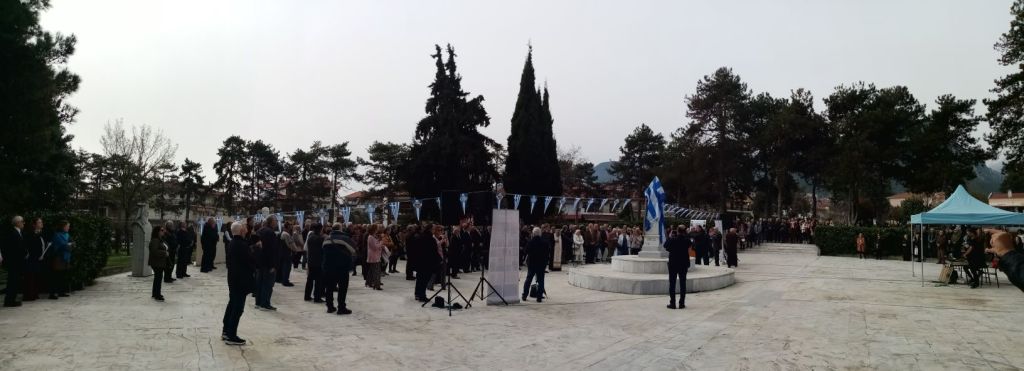 Εκεί, οι ιερείς τέλεσαν Τρισάγιο στη μνήμη των Πεσόντων, Εκπρόσωποι των Αποστράτων παρέθεσαν ομιλίες, μεταξύ των ομιλητών ήταν και η δισέγγονη της Ευαγγελίας (Μπουλιώς) Κόλπη-Λαλουμίχου κα Τριανταφυλλιά Τριανταφύλλου με αφορμή την συμπλήρωση 110 χρόνων από την γέννησή της.