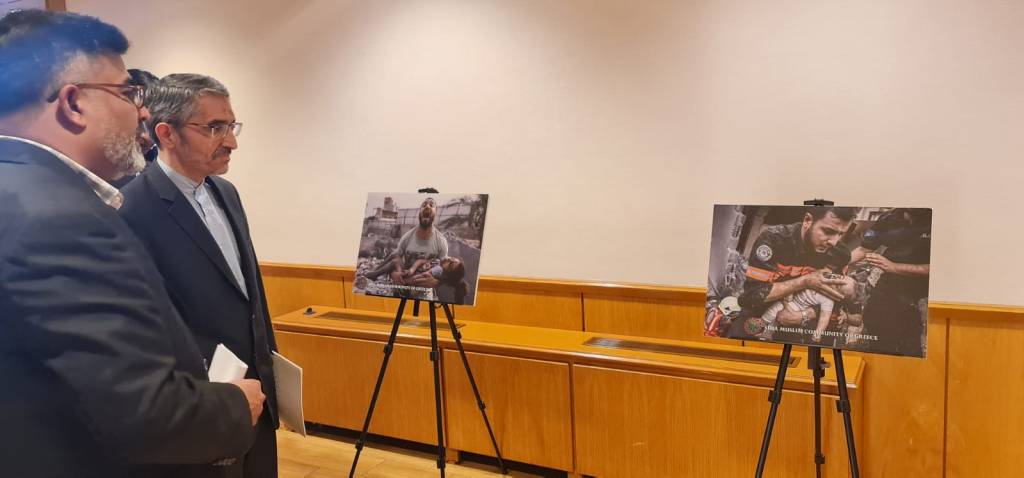 φωτ.ο κ. Malek Hossein Givzad, Πρέσβης της Ισλαμικής Δημοκρατίας του Ιράν περιηγείται στην φωτογραφική έκθεση έχοντας στα δεξιά του τον κ. Ασήρ Χαϊντέρ, Πρόεδρο της Κοινότητας Σιιτών Μουσουλμάνων Ελλάδος