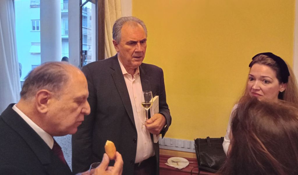 Στα πηγαδάκια που σχηματίστηκαν γύρω από τον μπουφέ, κυρίαρχο θέμα συζήτησης ήταν οι τρέχουσες εξελίξεις στην Μέση Ανατολή, ύστερα και από τις πρόσφατες επιθέσεις από το Ιράν με drones και πυραύλους προς το Ισραήλ ως απάντηση στον βομβαρδισμό της ιρανικής πρεσβείας στην Δαμασκό.