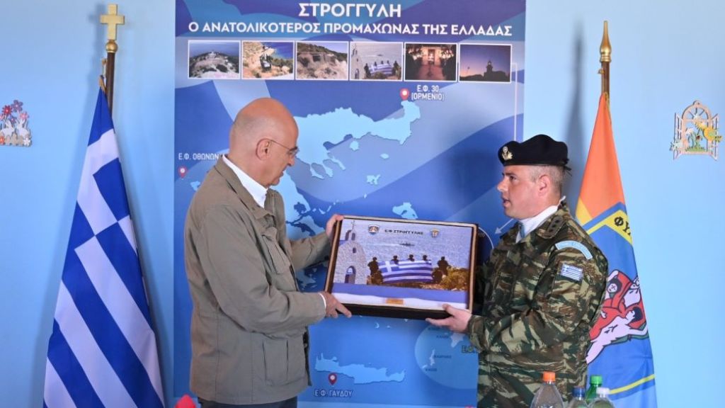 Ο Υπουργός Εθνικής Άμυνας Νίκος Δένδιας επισκέφτηκε την Στρογγύλη, τον ανατολικότερο προμαχώνα της Ελλάδας, όπως αναφέρει σε ανάρτησή του σήμερα στα μέσα κοινωνικής δικτύωσης.