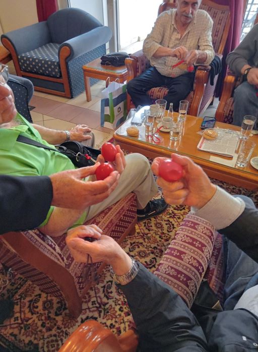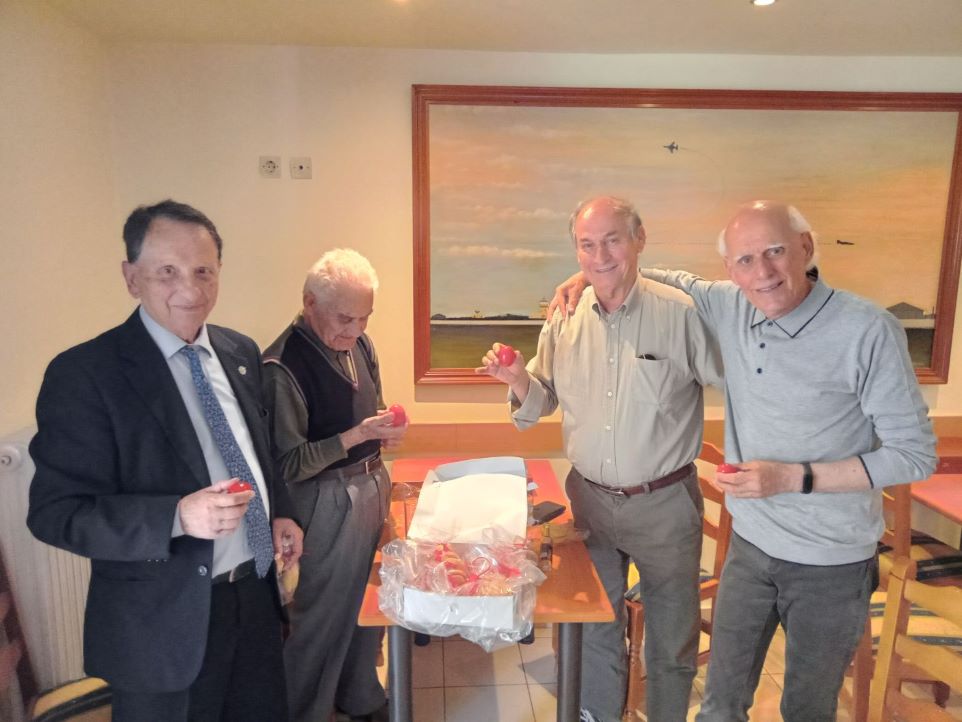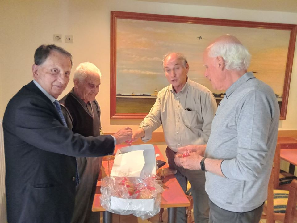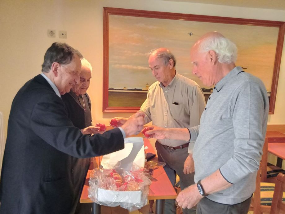 Ανταλλαγή Πασχαλινών ευχών με κεράσματα από γλυκίσματα, τσουρέκια, κουλούρια αλλά και το παραδοσιακό τσούγκρισμα αυγών μεταξύ των μελών της Ένωσης Αποστράτων Αξιωματικών Αεροπορίας (ΕΑΑΑ) Πάτρας έλαβε χώρα σήμερα Τετάρτη 8 Μαϊου 2024, στο εντευκτήριό τους, στο κέντρο της αχαϊκής πρωτεύουσας.