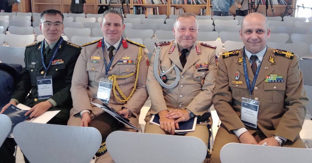 φωτ. από δεξιά, ο Ακόλουθος Άμυνας της Ρουμανίας Συνταγματάρχης κ. Vasile Stănescu, δίπλα του ο Ακόλουθος Άμυνας της Γερμανίας, αμέσως μετά ο Ακόλουθος Άμυνας της Αιγύπτου κ. Magdy Radwan και από αριστερά τω βλέποντι, ο Ακόλουθος Άμυνας της Κίνας κ. Liu Wei