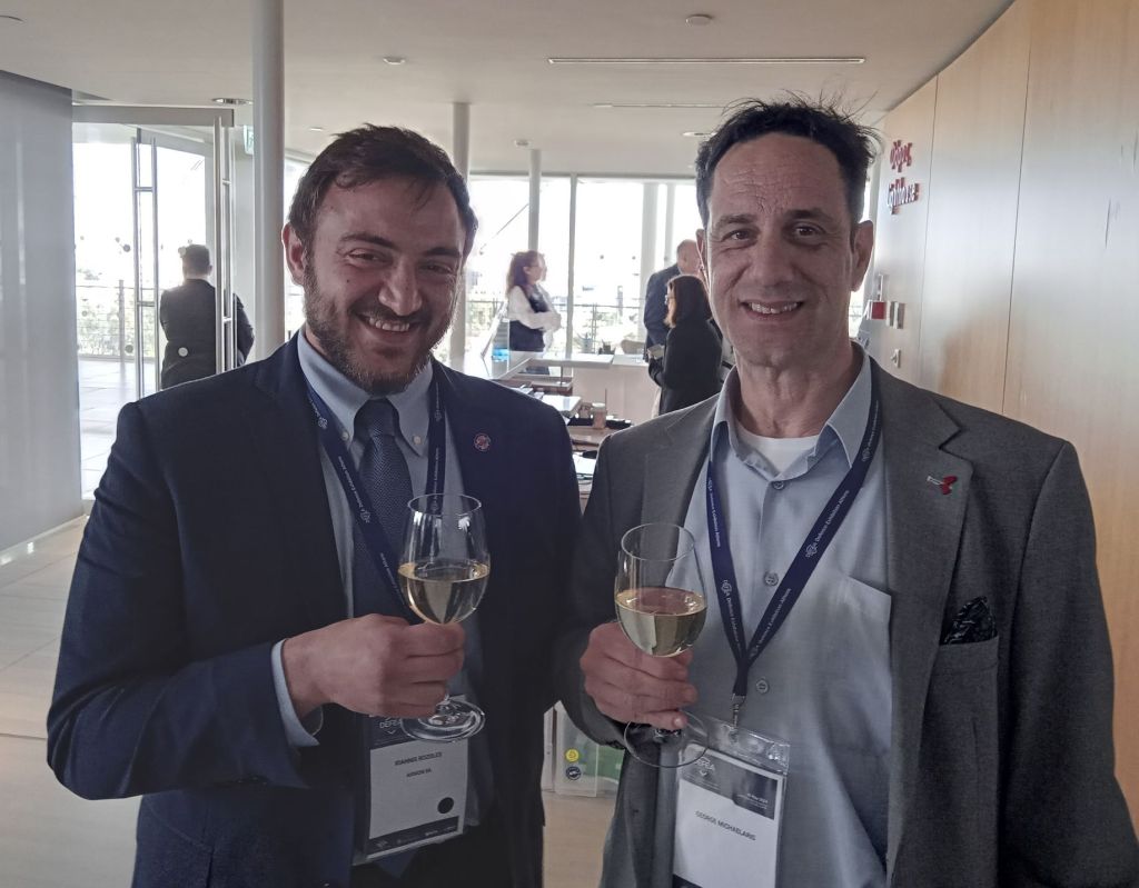 φωτ. από αριστερά τω βλέποντι, ο Πρόεδρος του ΣΕΚΠΥ κ. Αναστάσιος Ροζολής με τον γιο του κ. Ιωάννη Ροζολή, επιχειρηματία της αμυντικής βιομηχανίας