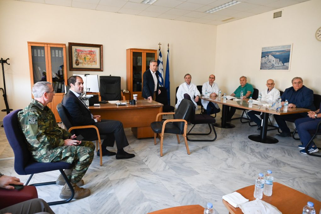 Ακολούθως, μετέβη στο Πανεπιστημιακό Γενικό Νοσοκομείο Αλεξανδρούπολης, το Γενικό Νοσοκομείο Διδυμοτείχου και το Κέντρο Υγείας Σουφλίου, όπου συναντήθηκε με τους Διοικητές των Νοσοκομείων, καθώς και με το προσωπικό που διατίθεται από το Υπουργείο Εθνικής Άμυνας για τις ανάγκες τους. Συγκεκριμένα, με τους τέσσερις Στρατιωτικούς Ιατρούς (Καρδιολόγος, Γαστρεντερολόγος, Πνευμονολόγος, Νευρολόγος) που διατίθενται στο ΠΓΝ Αλεξανδρούπολης, τους πέντε Στρατιωτικούς Ιατρούς (Καρδιολόγος, Παθολόγος, Ορθοπεδικός, Χειρούργος, Ψυχίατρος) που διατίθενται στο ΓΝ Διδυμοτείχου και τους τρεις οδηγούς ΕΚΑΒ, Επαγγελματίες Οπλίτες, που διατίθενται στο Κέντρο Υγείας Σουφλίου.