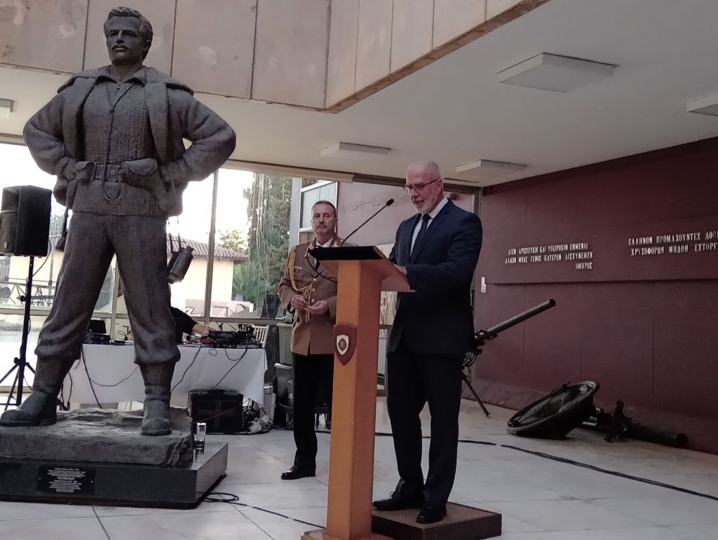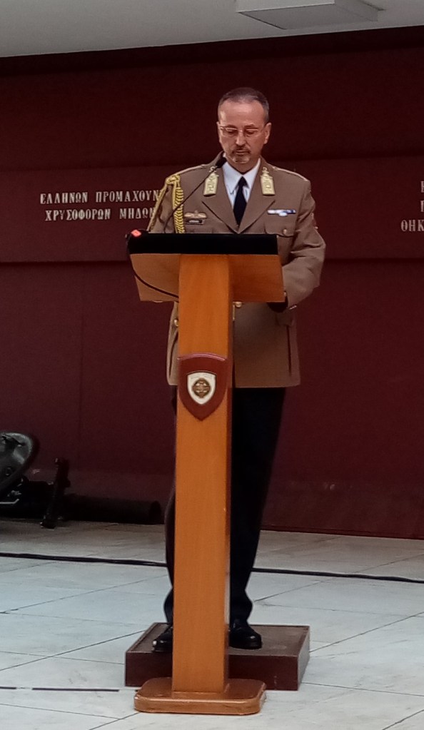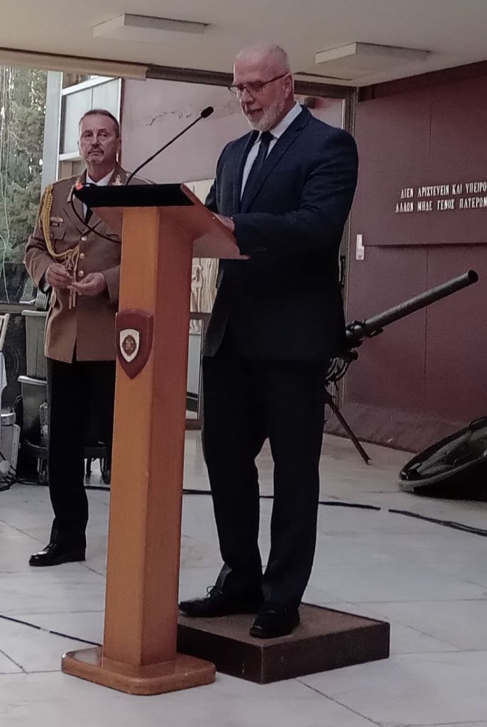 Στο βήμα των ομιλητών ο νέος Πρέσβης της Ουγγαρίας στην Ελλάδα Στρατηγός ε.α. κ. Zsolt Sándor και στα δεξιά του ο Ακόλουθος Άμυνας, Στρατού και Αεροπορίας της Ουγγαρίας Συνταγματάρχης κ. László Urbán