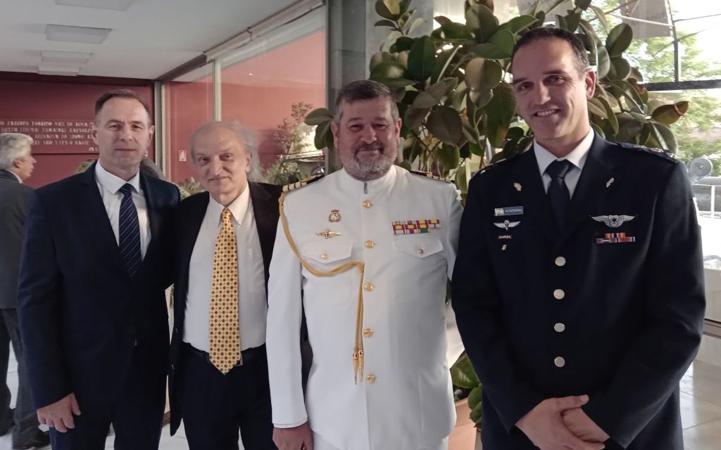φωτ.από δεξιά τω βλέποντι, ο Ακόλουθος Άμυνας του Ισραήλ κ. Tal Wollenberg, στα δεξιά του ο Ακόλουθος Άμυνας της Ισπανίας κ. Federico Antonio Garcia Castro, αμέσως μετά ο Διεθνολόγος – Γεωστρατηγικός Αναλυτής κ. Αθανάσιος Δρούγος και από αριστερά τω βλέποντι, ο νέος Ακόλουθος Άμυνας της Ουγγαρίας κ. Márton Szekeres