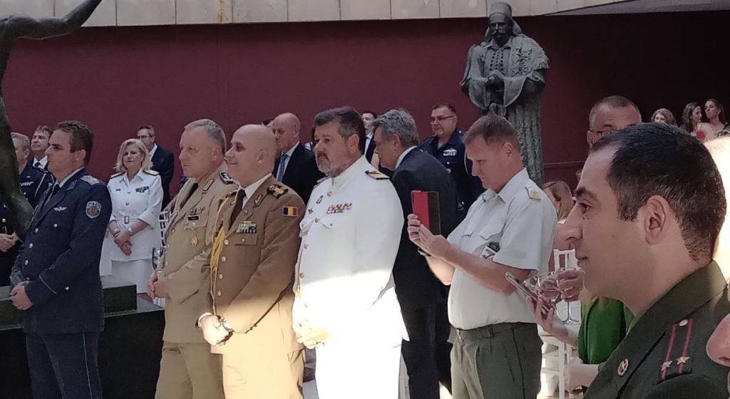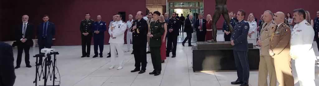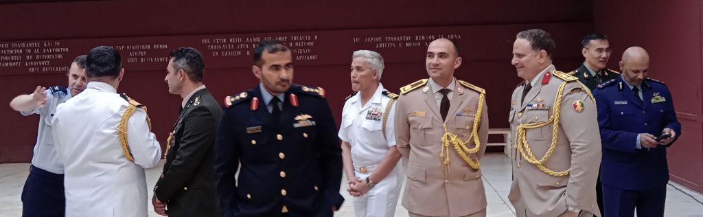 φωτ.από δεξιά τω βλέποντι, στο πλάι ο Ακόλουθος Άμυνας της Αρμενίας κ. Armen Mirzabekyan, στο κέντρο ο Ακόλουθος Άμυνας της Ισπανίας κ. Federico Antonio Garcia Castro, στα δεξιά του ο Ακόλουθος Άμυνας της Ρουμανίας Συνταγματάρχης κ. Vasile Stănescu, δίπλα του ο Ακόλουθος Άμυνας της Γερμανίας και από αριστερά τω βλέποντι ο Ακόλουθος Άμυνας της Βουλγαρίας κ. Milcho Ignatov