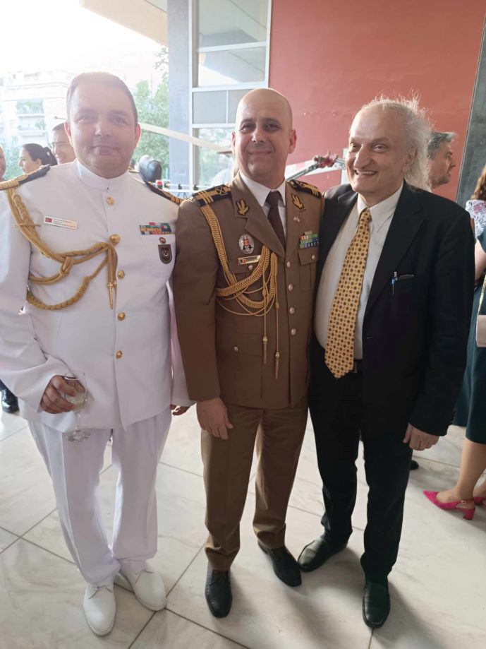 φωτ. στο κέντρο, ο ΑΚΑΜ Ρουμανίας κ. Vasile Stănescu, αριστερά του ο Διεθνολόγος κ. Αθανάσιος Δρούγος και δεξιά του ο Ναυτικός Ακόλουθος Τουρκίας