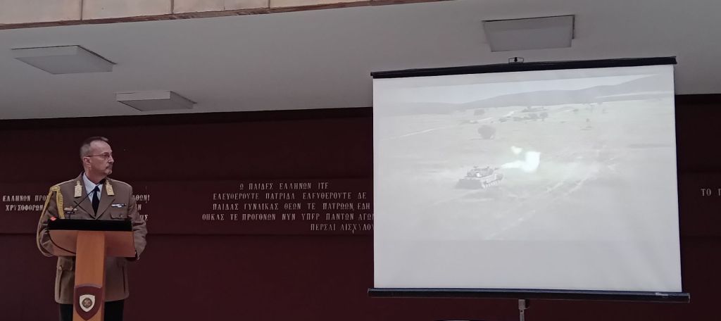Ο Συνταγματάρχης κ. László Urbán κατά την προβολή βίντεο για τις ουγγρικές ΕΔ