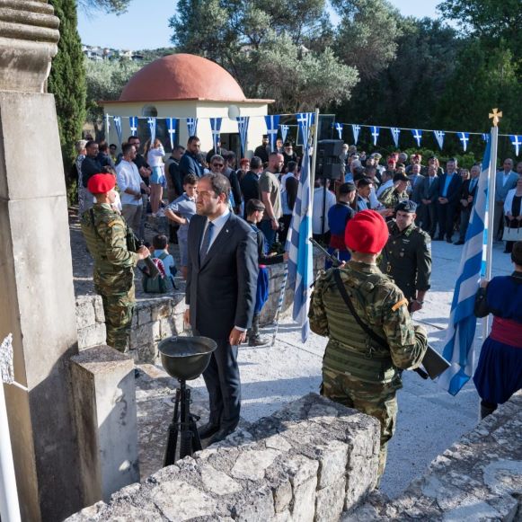 Τιμούμε τους ανθρώπους που πότισαν με το αίμα τους το δέντρο της ελευθερίας. Από το παράδειγμά τους, αντλούν δύναμη οι γυναίκες και οι άνδρες των Ενόπλων Δυνάμεων που σήμερα δίνουν καθημερινά τον αγώνα τους σε γη, θάλασσα και αέρα, προασπίζοντας τα εθνικά ιδεώδη και τα κυριαρχικά δικαιώματα της Πατρίδας μας.»