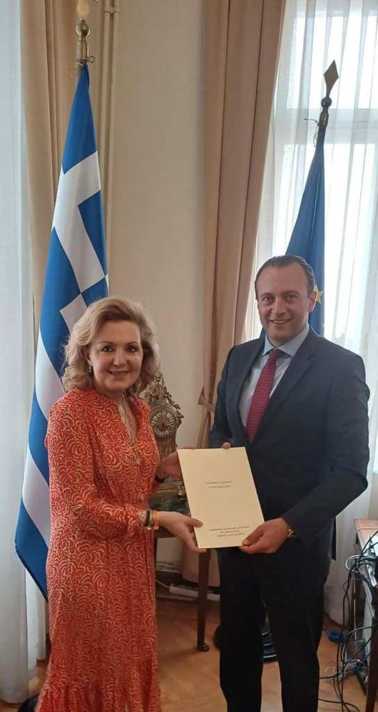 Ο νέος Πρέσβης της Γεωργίας στην Ελλάδα κ. Levan Beridze επισκέφτηκε την Πρέσβη κα Αγλαϊα Μπαλτά στην Διεύθυνση Εθιμοτυπίας του ελληνικού Υπουργείου Εξωτερικών σήμερα Δευτέρα 10 Ιουνίου 2024.