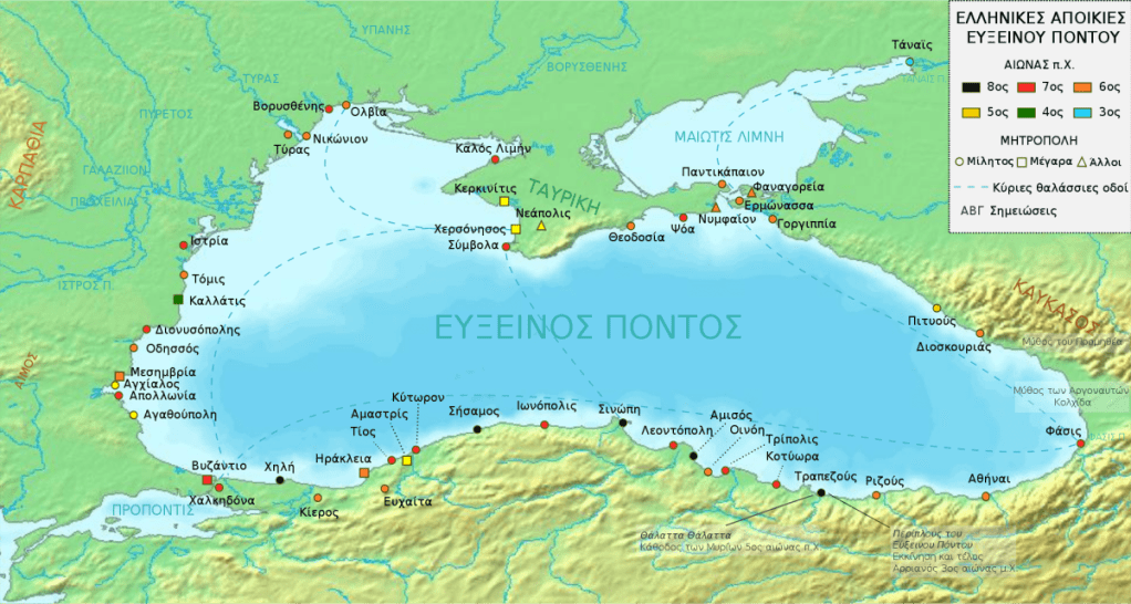 Οι ελληνικές αποικίες του Ευξείνου Πόντου (δημιουργός χάρτη: George Tsiagalakis)