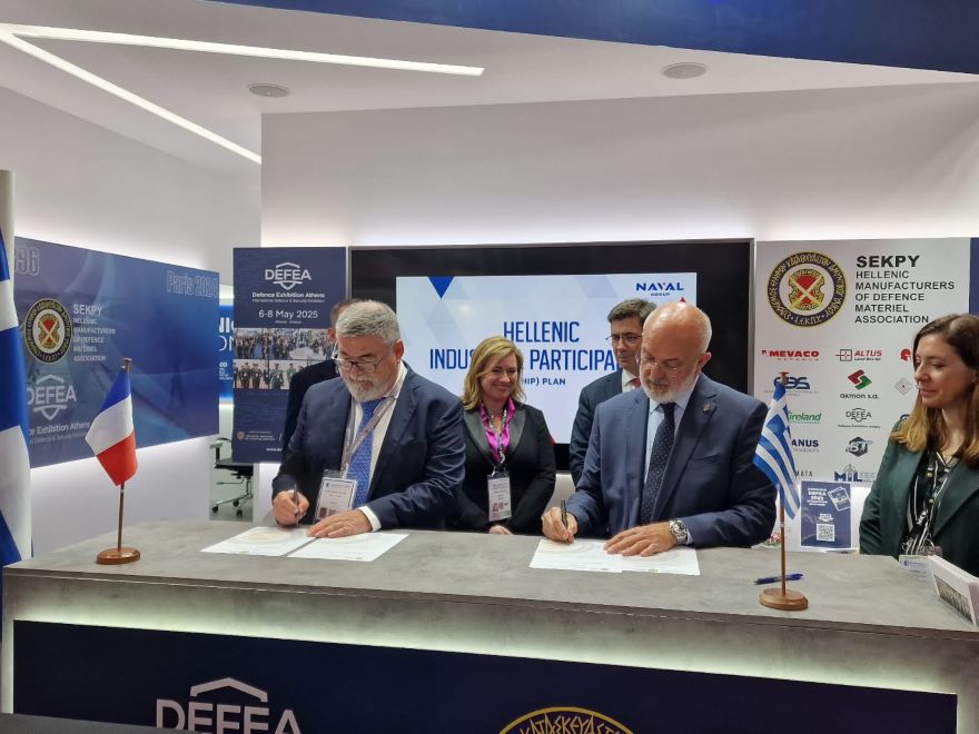 Ειδικότερα, κατά τη δεύτερη ημέρα της Διεθνούς Έκθεσης Άμυνας και Ασφάλειας EUROSATORY 2024, στο Ελληνικό Περίπτερο υπογράφτηκε η ένταξη της Naval Group Hellas στο ΣΕΚΠΥ από τον Πρόεδρο του ΣΕΚΠΥ, κ. Αναστάσιο Ροζολή, και τον κ. Benoit Chapalain, Εκτελεστικού Διευθυντή της Naval Group Hellas παρουσία του Pierre Eric Pommellet, Διευθύνων Σύμβουλο της Naval Group.
