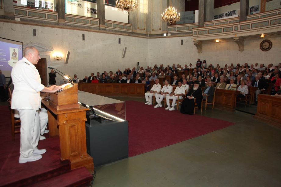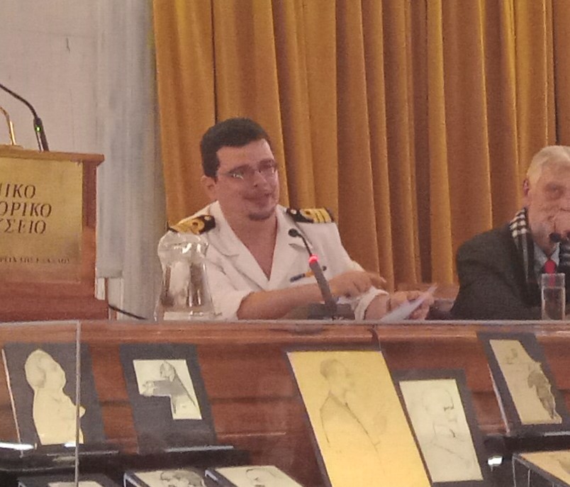 Χαιρετισμό στην εκδήλωση απηύθυνε ο Διευθυντής της Υπηρεσίας Ιστορίας Ναυτικού Αρχιπλοίαρχος Ιωάννης Καμπόλης ΠΝ.