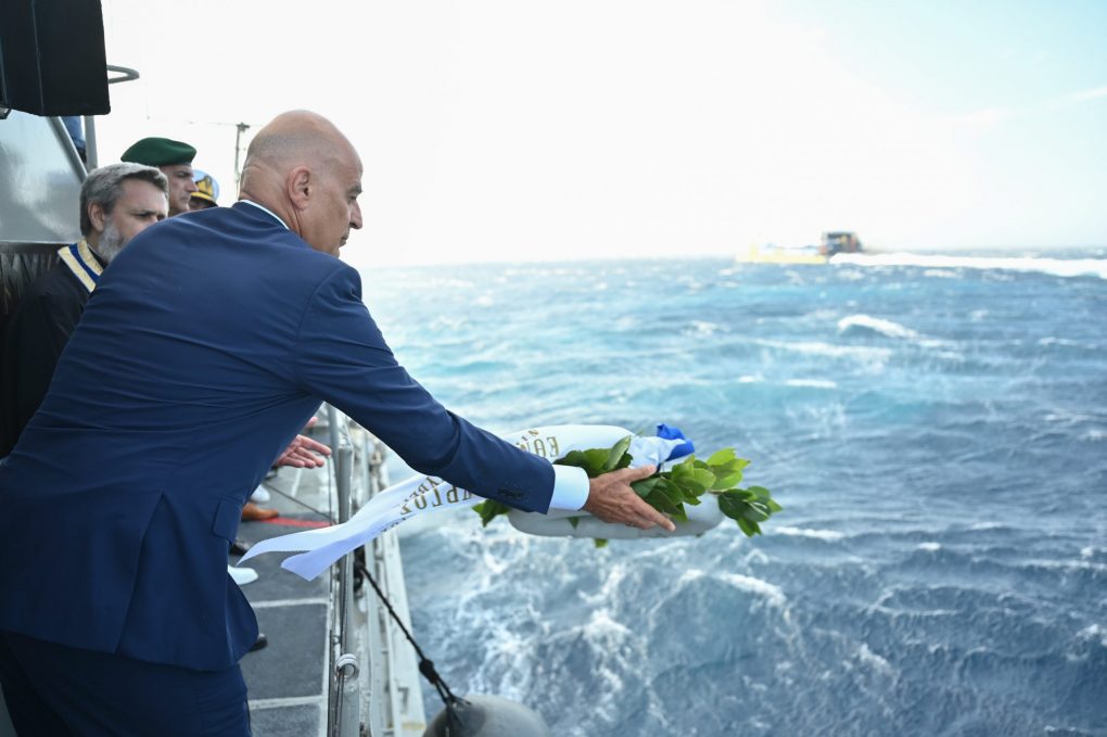Ο κ. Δένδιας, συνοδευόμενος από τον Αρχηγό ΓΕΕΘΑ Στρατηγό Δημήτριο Χούπη και τον Αρχηγό ΓΕΝ Αντιναύαρχο Δημήτριο – Ελευθέριο Κατάρα ΠΝ, επιβιβάστηκε στην ΤΠΚ «ΜΥΚΟΝΙΟΣ» του Πολεμικού Ναυτικού, που έπλευσε στη θαλάσσια περιοχή βύθισης του Κ/Δ «ΕΛΛΗ». Ακολούθησε η επιμνημόσυνη δέηση για τους πεσόντες και η ρίψη στεφάνων από τον Υπουργό Εθνικής Άμυνας και τον Αρχηγό ΓΕΕΘΑ. Στο σημείο που έπλευσε η ΤΠΚ «ΜΥΚΟΝΙΟΣ» ναυλοχεί τιμητικά η Φ/Γ «ΑΙΓΑΙΟΝ».