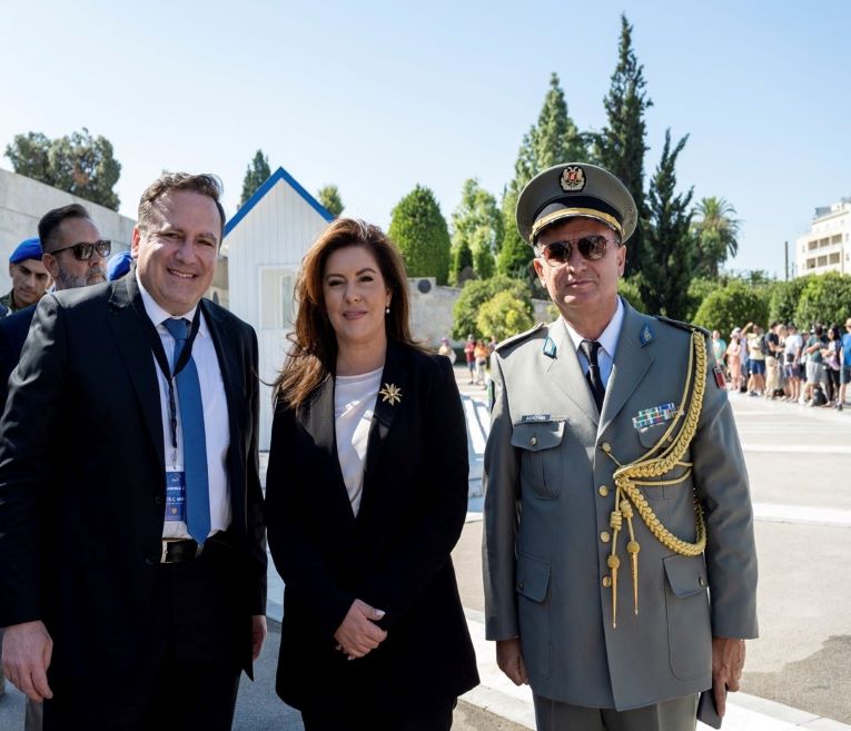 φωτ.στο κέντρο, η Πρέσβης της Αλβανίας κα Luela Hajdaraga με τον π. Ακόλουθο Άμυνας της Αλβανίας στην Ελλάδα κ. Roland Berzani και από αριστερά ο κ. Κυριάκος Μαριδάκης