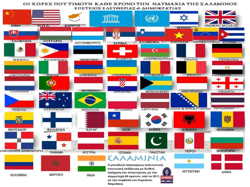 Στο πλαίσιο των πολιτιστικών εκδηλώσεων «ΣΑΛΑΜΙΝΙΑ 2024» την προσεχή Δευτέρα 16 Σεπτεμβρίου 2024 ώρα 11 π.μ. οι Πρέσβεις των Ξένων Χωρών στην Ελλάδα, Διπλωμάτες και Εκπρόσωποι Διεθνών Οργανισμών αναμένεται να παρευρεθούν στο Μνημείο του Αγνώστου Στρατιώτη στην πλατεία Συντάγματος στο κέντρο της Αθήνας όπου και θα πραγματοποιηθεί κατάθεση στεφάνων και επετειακές ομιλίες.