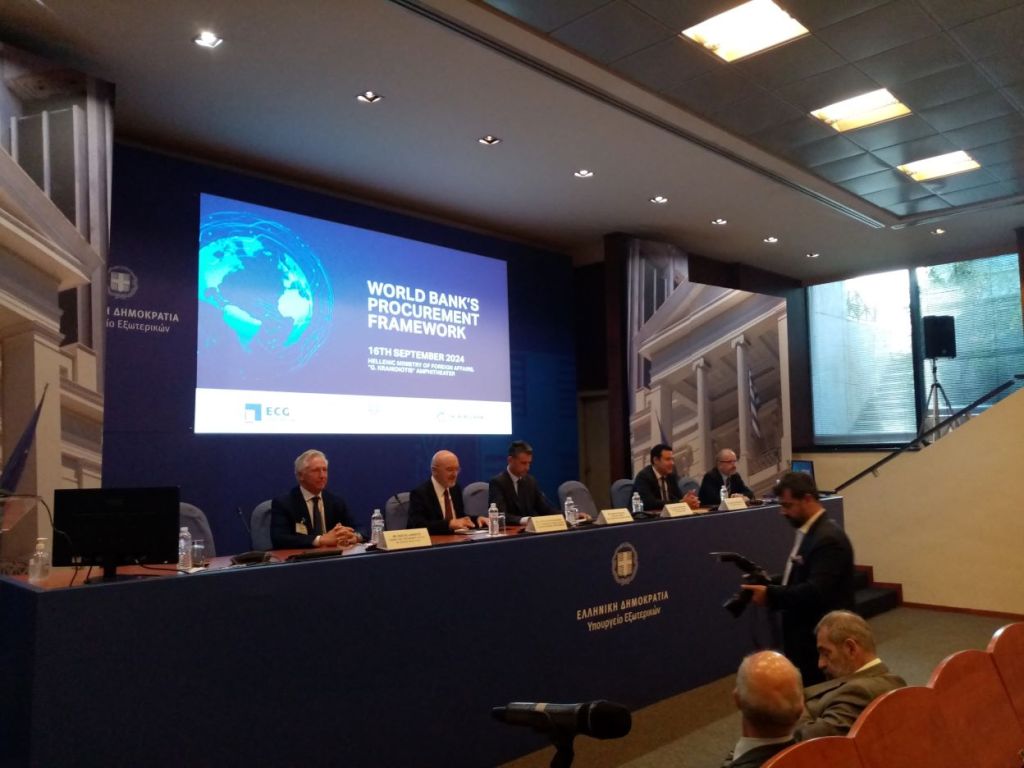 Ενημερωτική ημερίδα έλαβε χώρα χθες στο Υπουργείο Εξωτερικών με αντικείμενο «Το Σύστημα Προμηθειών της Παγκόσμιας Τράπεζας» της Γενικής Γραμματείας Διεθνών Οικονομικών Σχέσεων και Εξωστρέφειας του Υπουργείου Εξωτερικών, σε συνεργασία με την Παγκόσμια Τράπεζα και την Export Credit Greece.