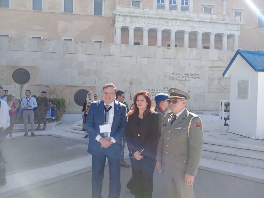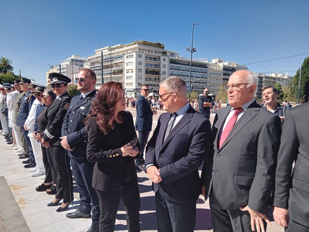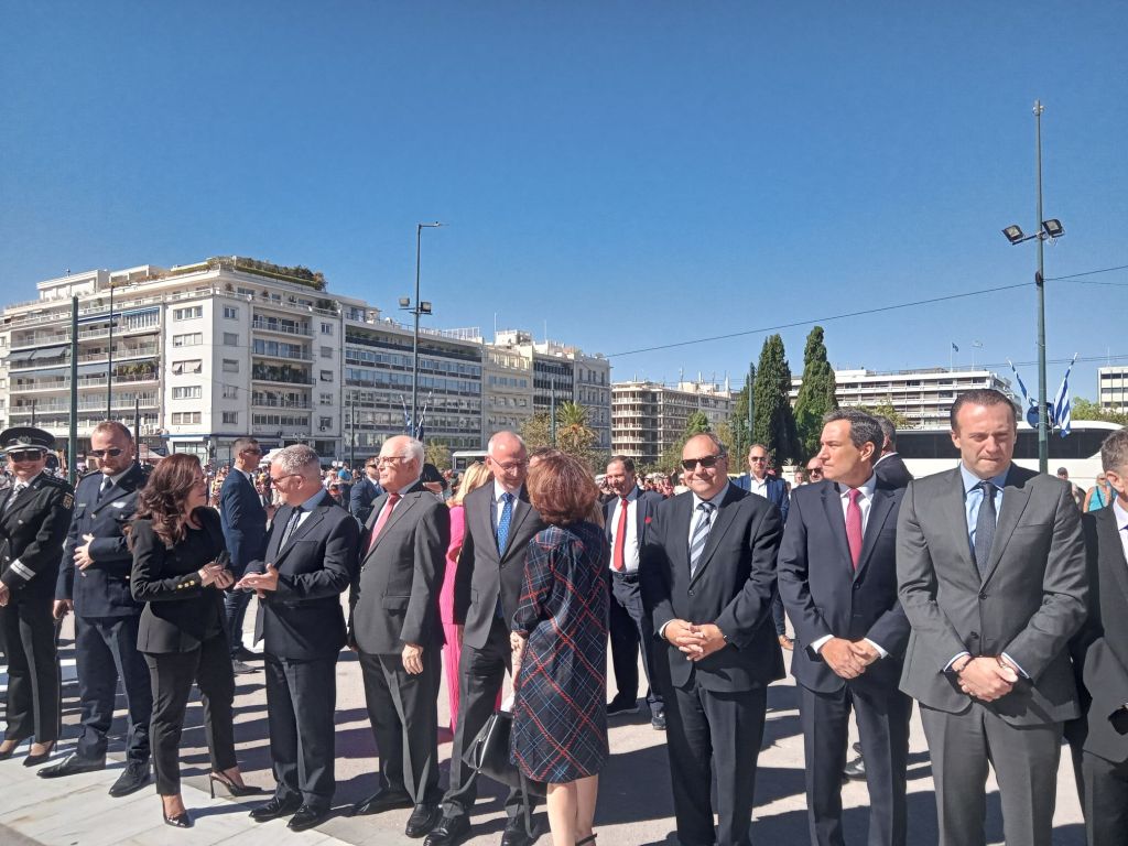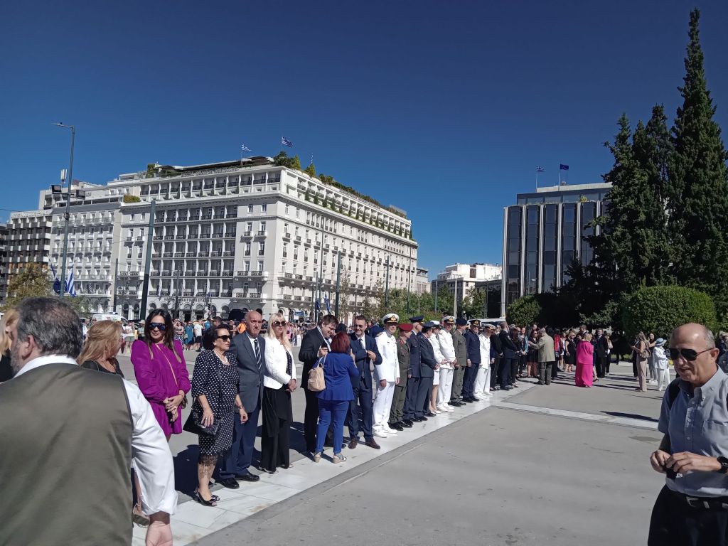 Μαζί τους Υπουργοί, Βουλευτές, Στρατιωτικοί εν ενεργεία και εν αποστρατεία, Εκπρόσωποι κομμάτων, φορέων και συλλογικοτήτων και με την ξεχωριστή συμβολή του παράγοντα της Πολιτιστικής Διπλωματίας κ. Κυριάκου Μαριδάκη, του Δημάρχου Σαλαμίνας κ. Γιώργου Παναγόπουλου και των συνεργατών του εκ του Δήμου Σαλαμίνας καθώς και των συντελεστών της Περιφέρειας Αττικής, έδωσαν ένα ιδιαίτερο τόνο μεγαλείου και λαμπρότητας στην τελετή κατάθεσης στεφάνων και τους αξίζουν συγχαρητήρια.