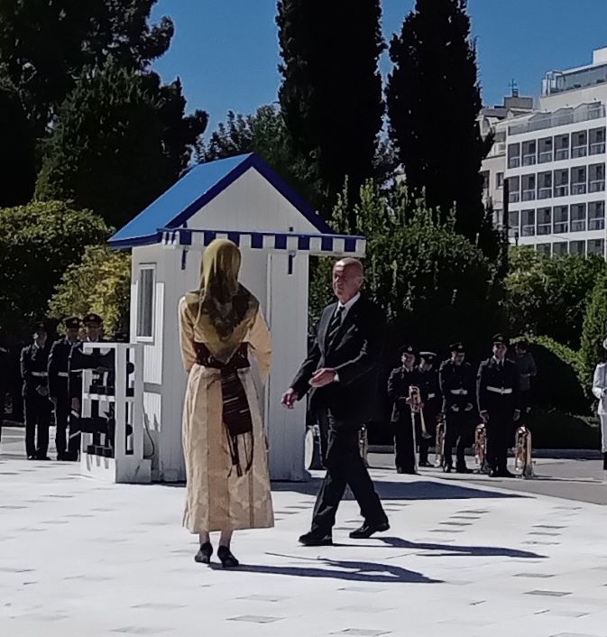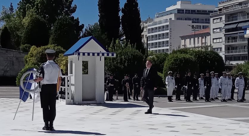 Λίγο αργότερα, συνοδεία τιμητικού αγήματος και μπάντας, ακολούθησε πορεία από την οδό Μητροπόλεως έως την πλατεία Συντάγματος όπου πραγματοποιήθηκε κατάθεση στεφάνων στο μνημείο του Αγνώστου Στρατιώτη.