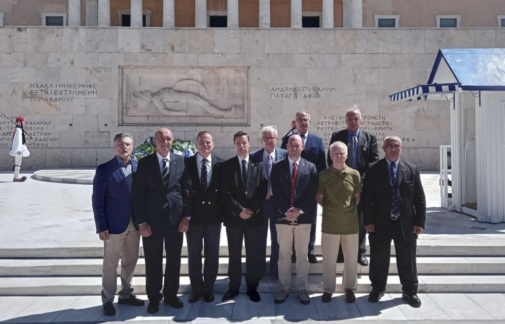 φωτ. από το Μνημείο του Αγνώστου Στρατιώτη, δεύτερος από αριστερά τω βλέποντι, ο κ. Θεόδωρος Γερούκης Αντιναύαρχος ε.α. Πρόεδρος της Ένωσης Αποστράτων Αξιωματικών Ναυτικού – ΕΑΑΝ, στα αριστερά του ο κ. Χαράλαμπος Πόκας Αντιστράτηγος ε.α. εκπρόσωπος της Ένωσης Αποστράτων Αξιωματικών Στρατού – ΕΑΑΣ, αμέσως μετά ο κ. Φίλιππος Κωσταράς Πρόεδρος της Ανωτάτης Πανελλήνιας Ομοσπονδίας Εφέδρων Αξιωματικών – ΑΠΟΕΑ. Πρώτος από δεξιά τω βλέποντι, ο κ. Ισαάκ Καμενίδης εκ του ΔΣ του Συνδέσμου Ελλήνων Βατραχανθρώπων, στα δεξιά του ο κ. Ιωάννης Αναστασόπουλος Πλωτάρχης ΛΣ ε.α. Γραμματέας ΕΑΑΝ ΝΔ Ελλάδος. Πίσω σειρά από δεξιά, ο κ. Γεώργιος Μονογυιός Πρόεδρος του Πανελλήνιου Συνδέσμου Πολεμιστών Εκστρατευτικών Σωμάτων Μέσης Ανατολής Ριμινιτών Ιερολοχιτών και δεξιά του ο κ. Γιάγκος Γιάγκου Υποστράτηγος ε.α. Αντιπρόεδρος της Λέσχης Καταδρομέων και Ιερολοχιτών