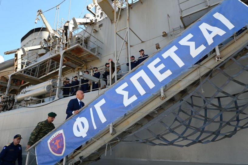 Οι σκέψεις μας, οι ευχές όλων μας θα σας συνοδεύουν στο ταξίδι σας, στις περιπολίες σας. Όπως και στις δύο άλλες φρεγάτες, θα έρθω να σας δω στην Ερυθρά Θάλασσα. Θα ήθελα να σας ευχηθώ, καλή επιτυχία και καλή επιστροφή.