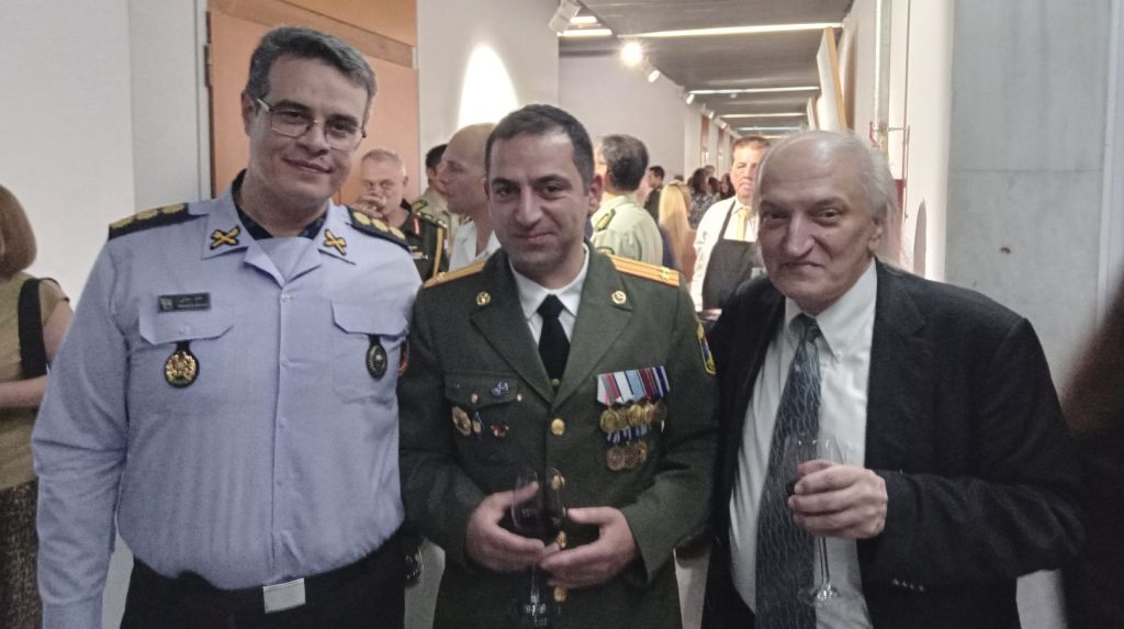 φωτ.στο κέντρο, ο Ακόλουθος Άμυνας της Αρμενίας κ. Armen Mirzabekyan, στα δεξιά του ο Ακόλουθος Άμυνας του Ιράν κ. Hamed Abbasi και από δεξιά τω βλέποντι ο κ. Αθανάσιος Δρούγος Διεθνολόγος