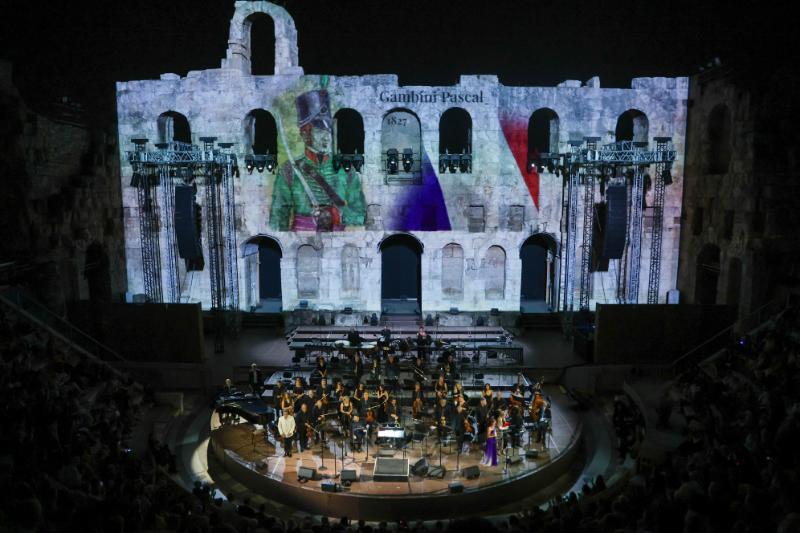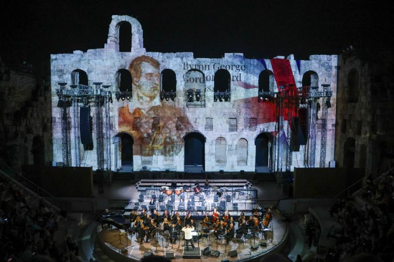 Σε όλη τη διάρκεια της συναυλίας προέβαλαν στον τοίχο του Ηρωδείου τα πορτραίτα 80 εμβληματικών Φιλελλήνων, το καθένα με την σημαία της χώρας του, σύμφωνα με σχετική ανακοίνωση.